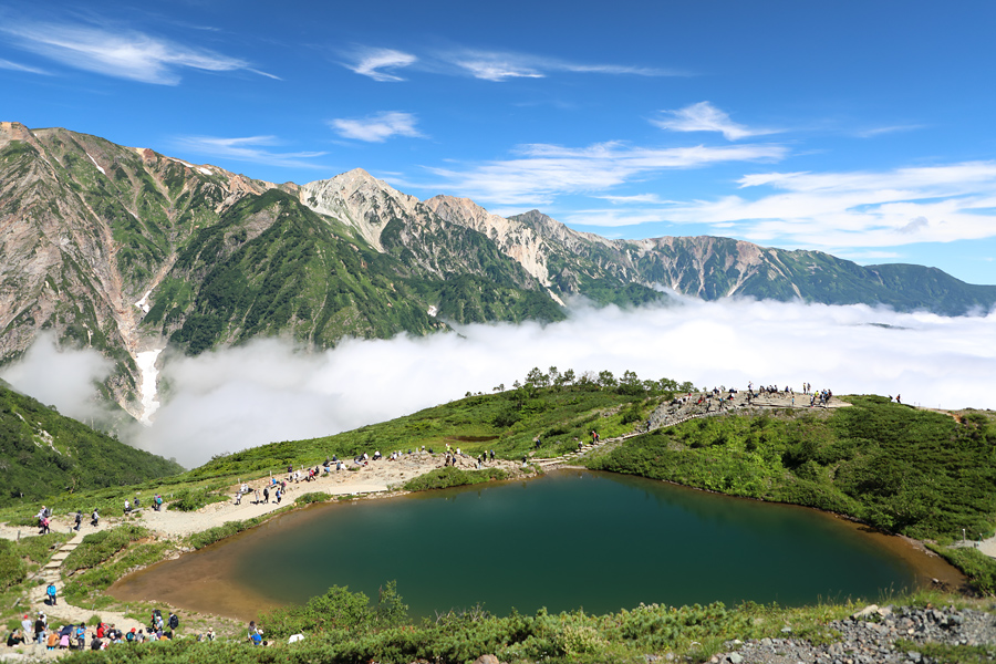 特殊な「蛇紋岩(じゃもんがん)」と呼ばれる地質により、黒菱平から八方池上部付近まで、本来標高2,500m以上の高山でしか見られない希少な低木林や花々が咲きます。